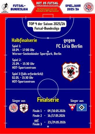 Das Hinspiel in Neu-Isenburg ging am Ende 4:5 nach eigener „unterirdischer“ Leistung in der 1.Halbzeit und demententsprechend 4:1 Rückstand in der Pause verloren. +++ Ein gutes Spiel mit einem Heimsieg und dazu einige taktische Extras im Hinblick auf die am 21.3.startende Viertelfinalrunde bei den Play Offs sind die Zielstellung für unser Heimspiel am kommenden Samstag , den 7.3. . Anstoß ist 15:30 Uhr ! Wir freuen uns auf unsere Besucher und natürlich auch auf die F-Junioren , die bereits ab 11:30 Uhr mit einem Kinder-Futsal-Turnier ins Rahmenprogramm des Bundesligaspieltages integriert sind.