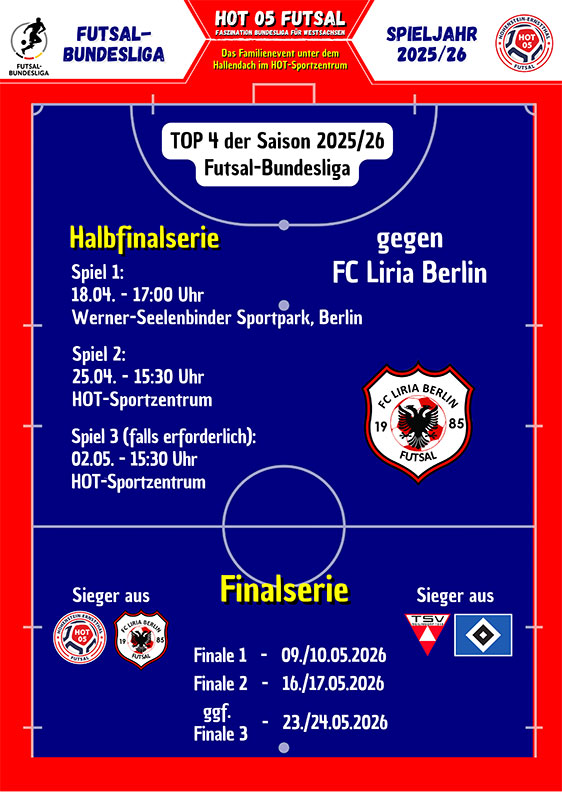 Futsal-Bundesliga mit Ost-Derby HOT 05 gegen FC Liria Berlin am Samstag, 19.10.24 im HOT-Sportzentrum