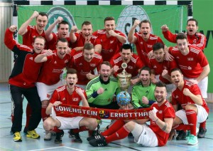 Unsere Männer fühlten sich nach unmittelbar nach Abpfiff zwar "etwas vergageiert" , gratulierten dennoch bereits unmittelbar nach der Schlußsirene sportlich fair dem Sieger und nahmen vor dem anschließenden gemeinsamen Abendessen beider Teams den NOFV-Siegerpokal als Meister der Futsal-Regional-Liga Nordost von Präsidenten Rainer Milkoreit entgegen. Es war von Seiten der Spieler beider Teams und den 550 Besuchern auf der Tribüne Werbung für den Futsal.