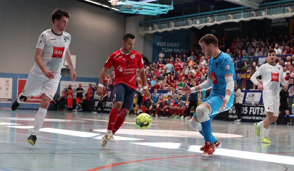 Mit 543 Besuchern gab es wie erwartet eine ausverkaufte Halle im HOT-Sportzentrum. +++ Mit viel Einsatz, Teamgeist und Disziplin in jeder Phase der beiden Partien ziehen wir ins Finale der DFB Futsal-Bundesliga ein. Nach dem 4:2 Auswärtssieg vor einer Woche auswärts in Weilimdorf und einer 3:1 Führung nach 28 Minuten im Rückspiel gestern im heimischen HOT-Sportzentrum wurde es beim am Ende 3:4 noch einmal eng.