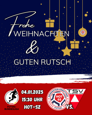 Zwei TOP -Heimspiele der deutschen Futsal-Extraklasse gibt es jetzt im Januar für die Futsal-Fans aus der Region mit den Kicks gegen TSV Weilimdorf am 4.1. und am 18.1.gegen den Hamburger SV. Anstoß an dem beiden Samstagen ist 15:30 Uhr im HOT-Sportzentrum.