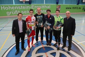 Als "Beste Torhüter" des Turniers wurden der slowakische Futsal-Nationaltorhüter Mario Vozar, dazu unser VfL 05-Keeper Marco Pohl, und als "Beste Spieler" die beiden tschechischen Futsal-Nationalspieler Jiri Novotny (Slavia) , Zdenek Slama (Sparta) und der Kapitän der Sachsenauswahl Josef Nemec (sh. Foto) geehrt.